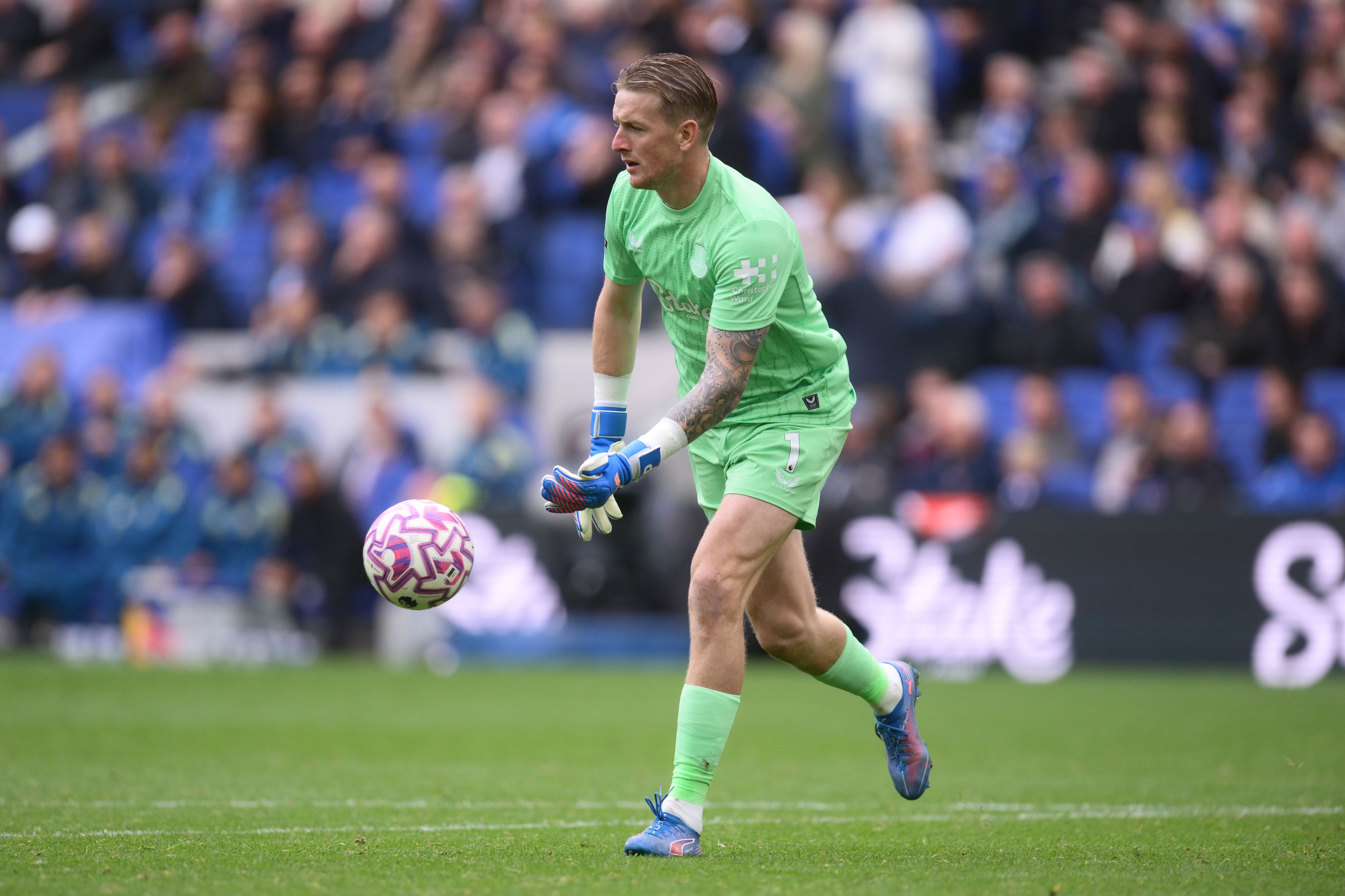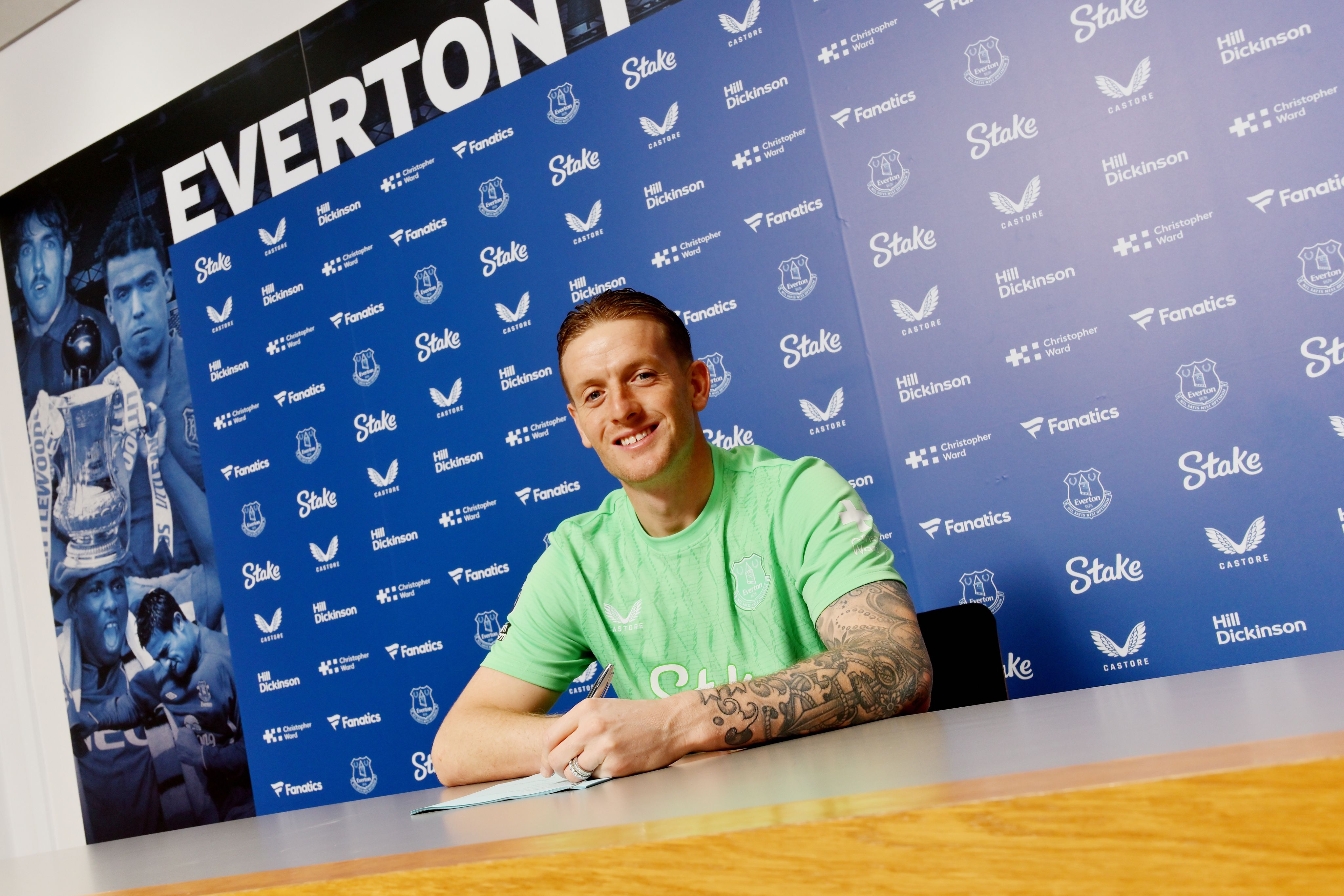 Jordan Pickford is sitting at the desk in Finch Farm’s media room, the ink from his signature still drying on a new four-year contract to keep him with Everton until the summer of 2029.
